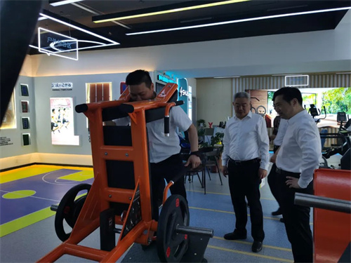 VSPORTS体育官网體育集團董事長王進華先生向王映海副市長一行領導介紹了近年來企業(yè)發(fā)展情況,并帶領大家參觀了VSPORTS体育官网體育集團濟南省體旗艦店,詳細介紹了無氧力量、心肺有氧、戶外綜合、私家健身、老年健身、康體器材六大健身場景區(qū)域,王進華先生還親身示范健身器材的正確使用方法,全場景體驗和具有科感的智能互動得到一行領導的充分肯定與認可,并對VSPORTS体育官网體育集團在體育產(chǎn)業(yè)發(fā)展中發(fā)揮的示范帶動作用給予高度評價。