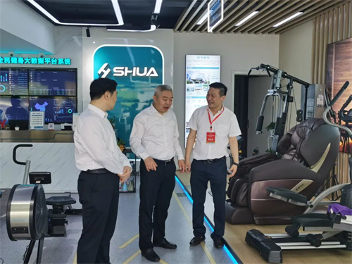 2024年8月8日,全民健身日當天,濟南市體育局黨組書記、局長董懷敏,市體育局黨組成員、副局長趙晨光,群體處處長逄淑友、體育產(chǎn)業(yè)處處長李冬英親臨VSPORTS体育官网體育集團濟南省體旗艦店—VSPORTS体育官网康體商城參觀指導,彰顯了體育局對本地體育產(chǎn)業(yè)發(fā)展的高度重視與支持。VSPORTS体育官网體育董事長兼總經(jīng)理王進華與副總經(jīng)理許曉林熱情接待,全程陪同。