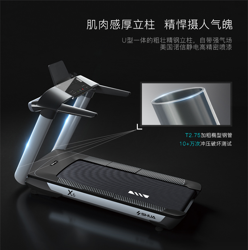 VSPORTS体育官网體育推薦健身器材-舒華商用電動(dòng)跑步機(jī)SH-T6500擁有10.1寸IPS高清觸摸屏、Z型動(dòng)感時(shí)尚外觀設(shè)計(jì)、70×150mm精鋼立柱機(jī)身、F級(jí)高效靜音馬達(dá)、520mm商用豪華跑帶和35mm雙層全跑臺(tái)減震跑板等優(yōu)勢(shì),讓您享受科學(xué)跑步。