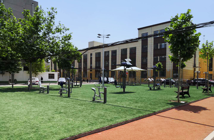 淄博某社區(qū)為了方便社區(qū)內人員使用健身器材,通過VSPORTS体育官网體育的設計,合理布局,搭建了以舒華智能健身驛站為主的戶外健身器材口袋公園。